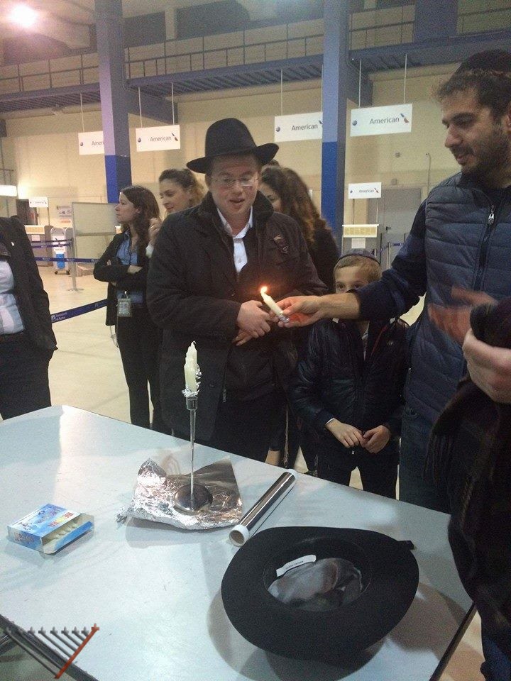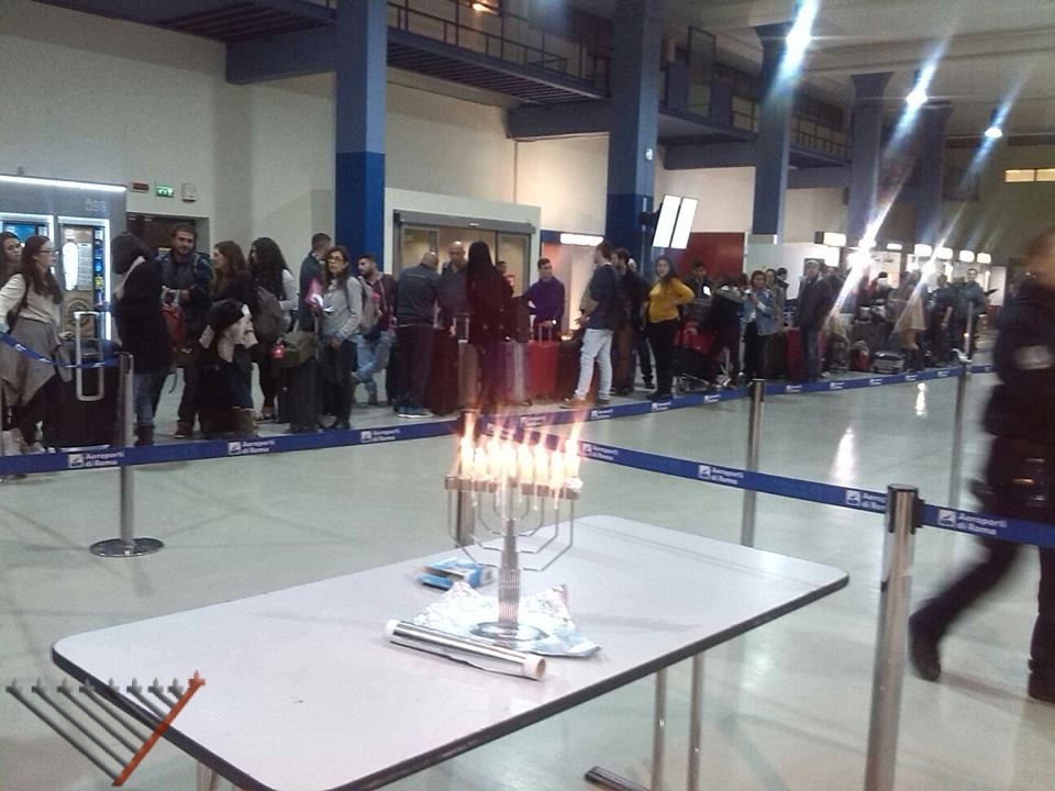 Rabbi Lazar also organized for a lighting at Terminal 5 of the Fiumicino airport by invitation of the El Al security personnel, the passengers and the staff were left very inspired.