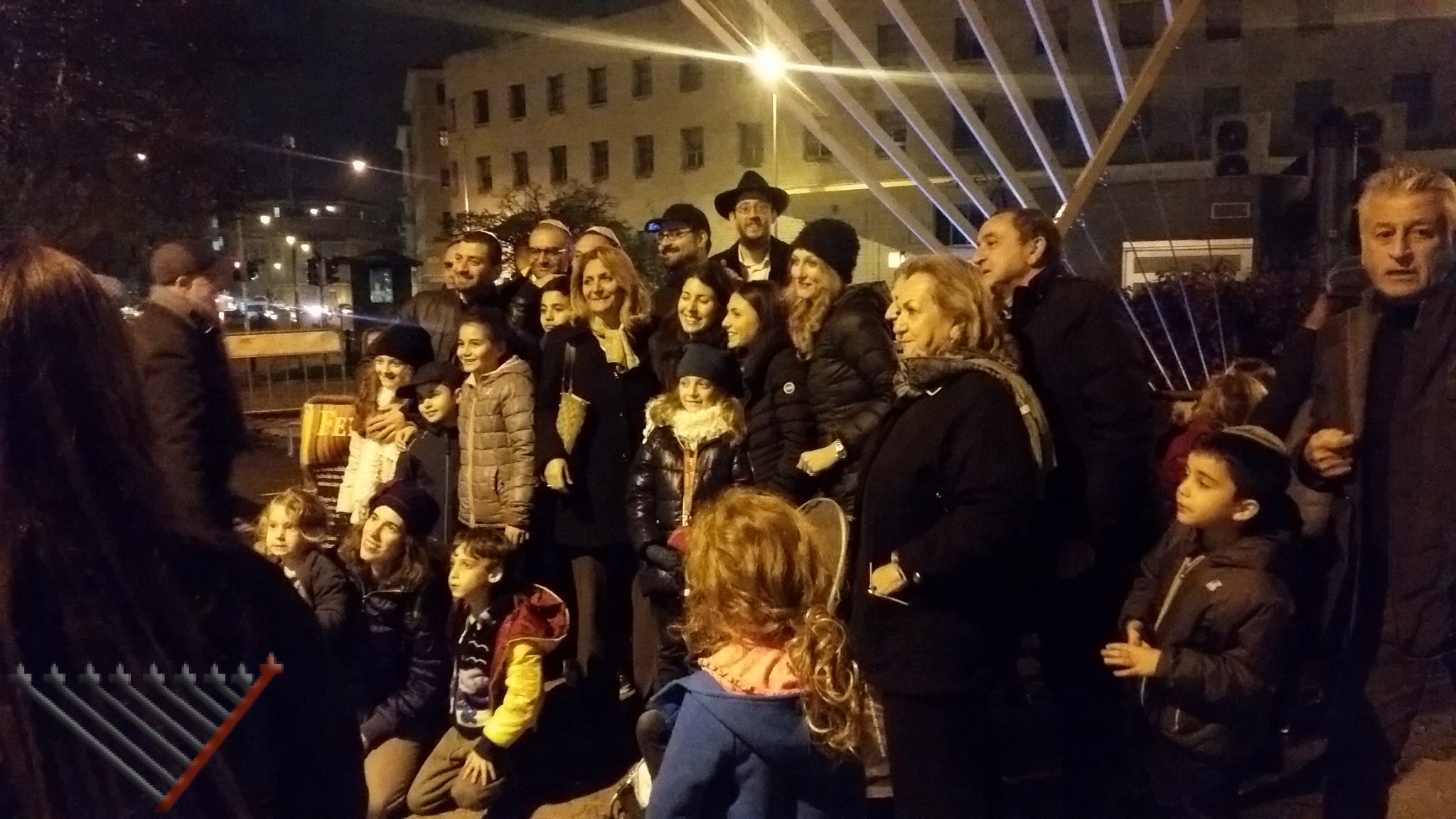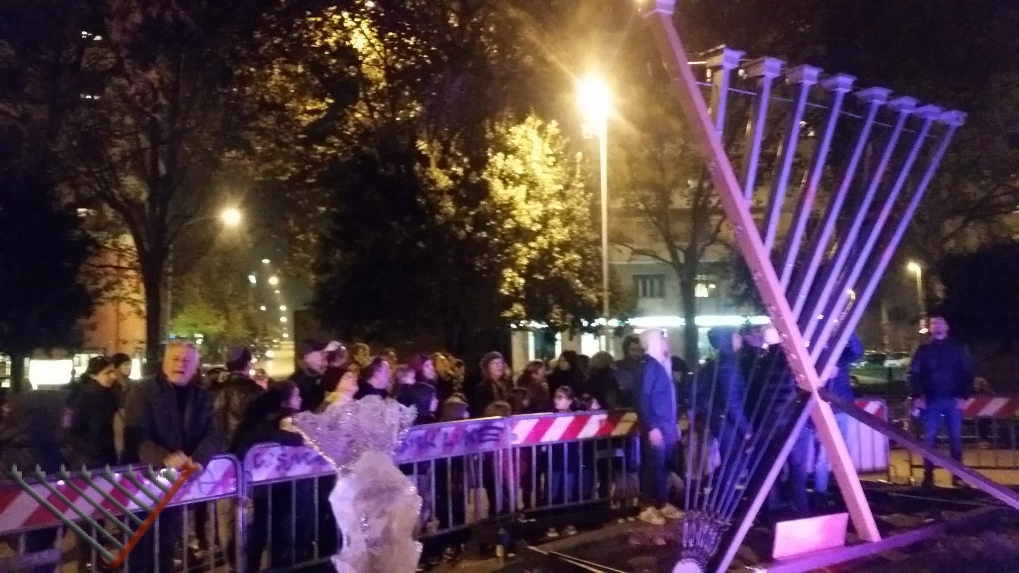 Each night of Chanukah the giant Chanukia was lit by a different family, being the first and the last night of Chanukah on a Sunday, the crowd was very large, but each night Rabbi Lazar offered doughnuts to all the participants.