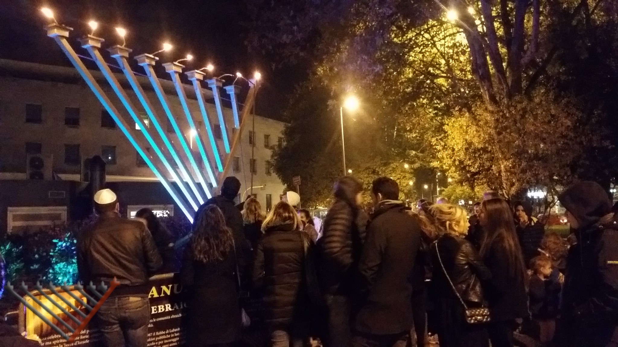 Chanukah is a holiday of light and joy, Chabad in Piazza Bologna erected, as in the past years, the iconic giant Chanukiah in the center of the square, the main event was on the seventh night of Chanukah, Saturday night, with a special Chanukia made of ice, music and various types of refreshments like doughnuts, sushi, cookies, etc…
