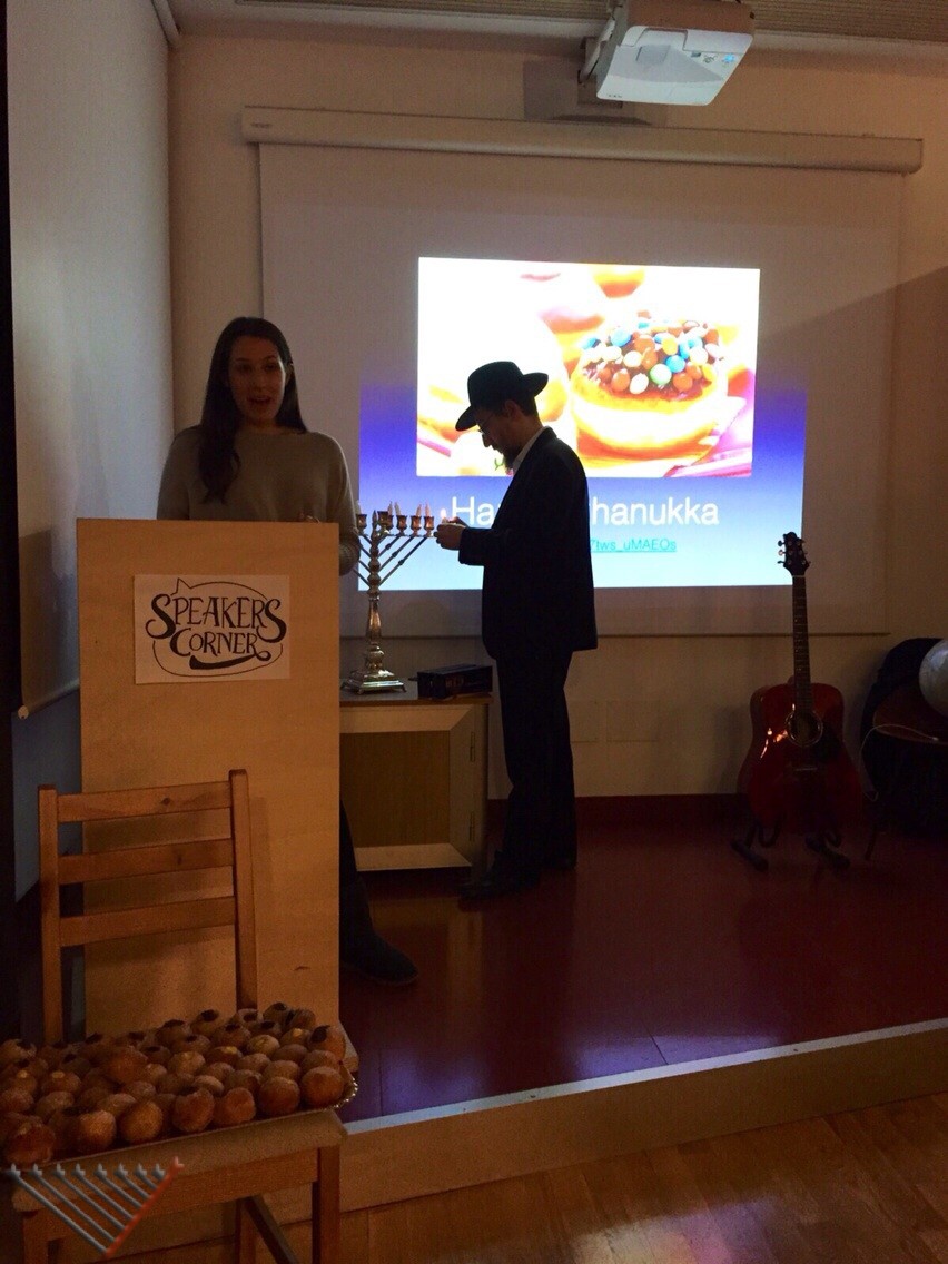 Rabbi Lazar also participated at two Chanukah parties organized by students, one by the Israeli Student Organization, and one at the LUISS University, where he spoke about Chanukah and lit the Chanukia.