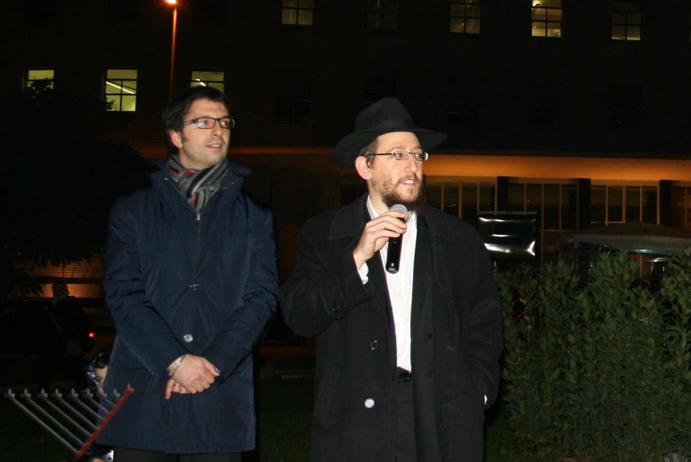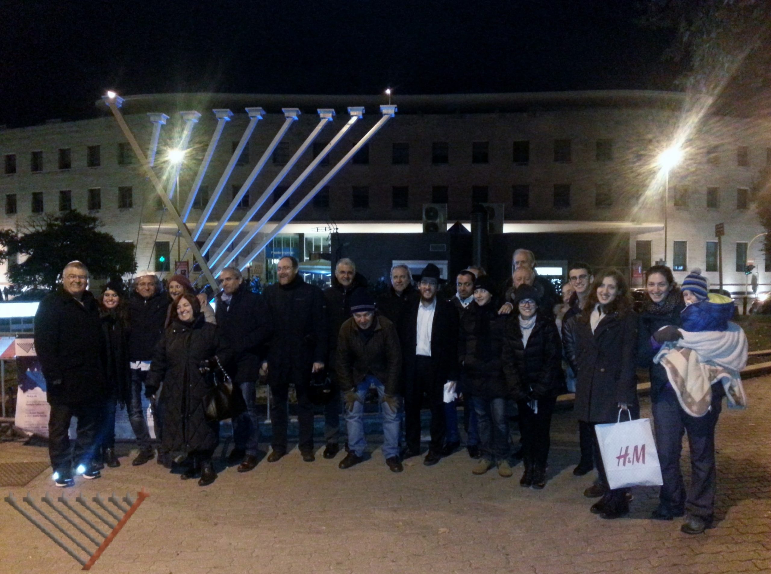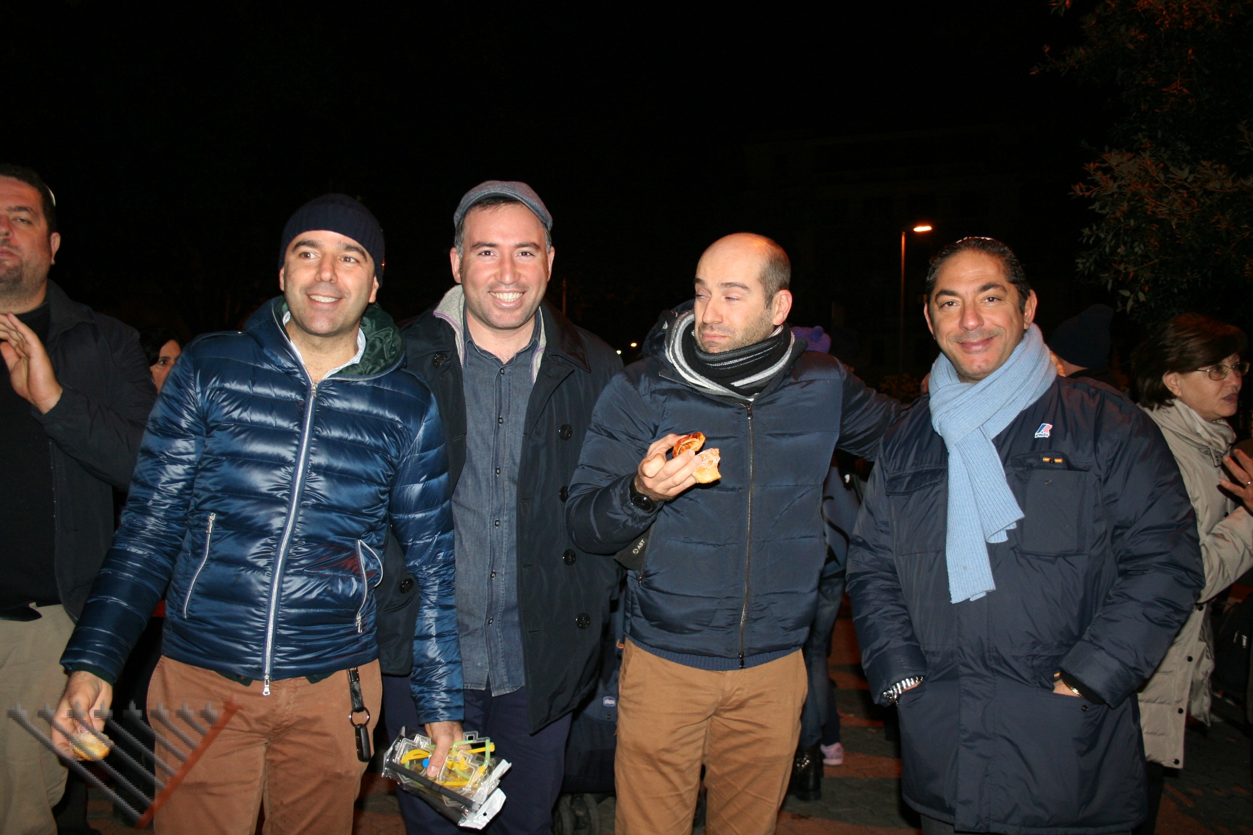 The fourth evening was dedicated in memory of Shmuel and Sarina Naman z”l, pillars of the local Libyan Jewish community and founders of the first Libyan synagogue in Rome, the evening was honored by the Vice-President of the local City council, Mr. Emanuele Zisci and other council members Guido Capraro and Andrea Alemanni. Rabbi Lazar thanked all the people involved who made the project possible and asked Rabbi Hazan, the Head Shliach of Chabad in Rome, to offer some insights on the festivity. The Naman brothers were honored with lighting the candles and the crowd rejoiced with the doughnuts and the music.