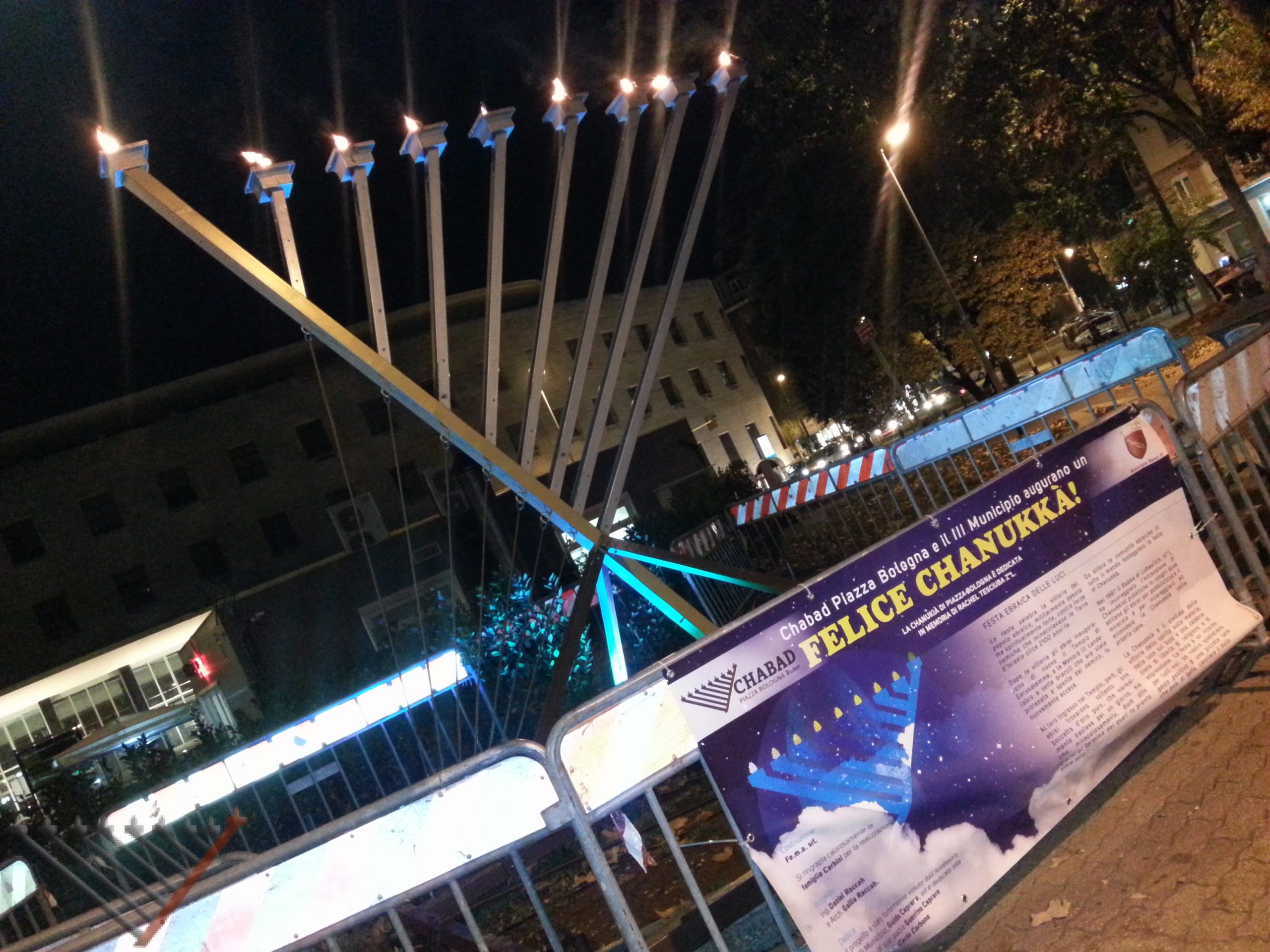 For the second year the giant Chanukah Menorah was displayed in the garden of Piazza Bologna attracting many people throughout the day who read the explanation posted.