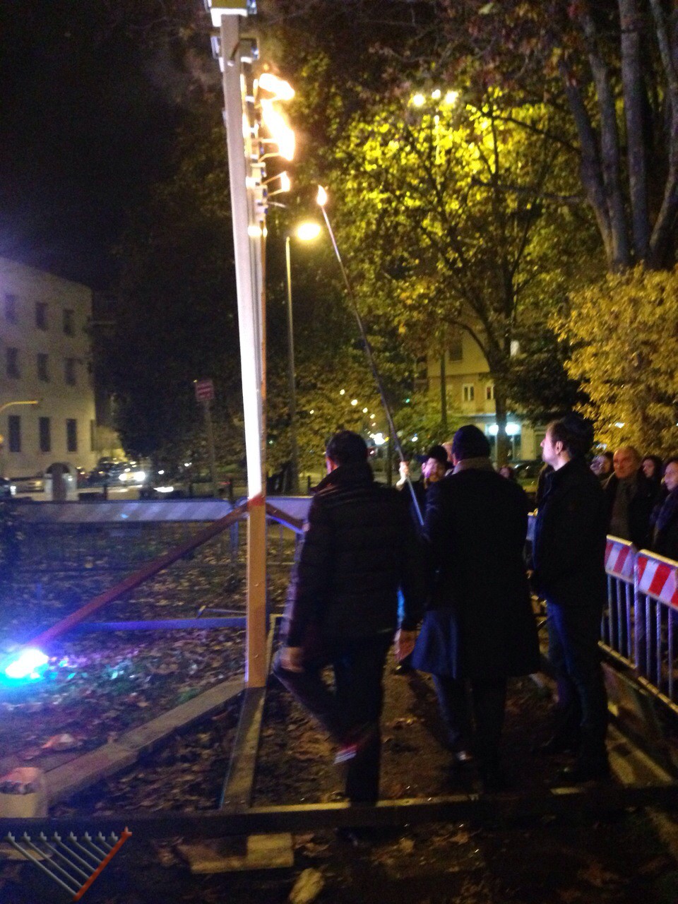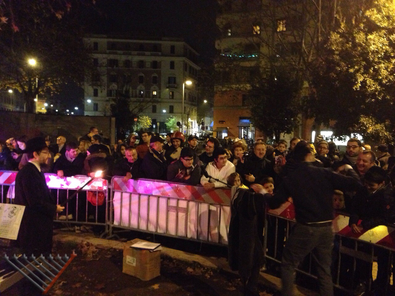 Each year, Motzei Shabbat (saturday night) of Chanukah, is the night of the party at the Chanukah menorah of Piazza Bologna.
