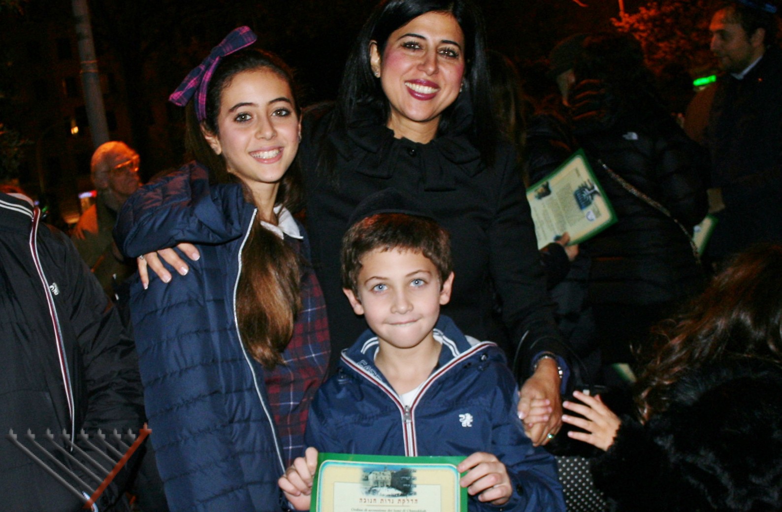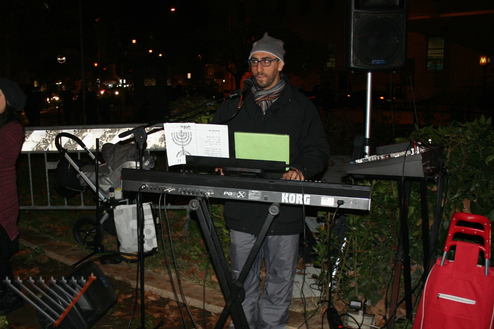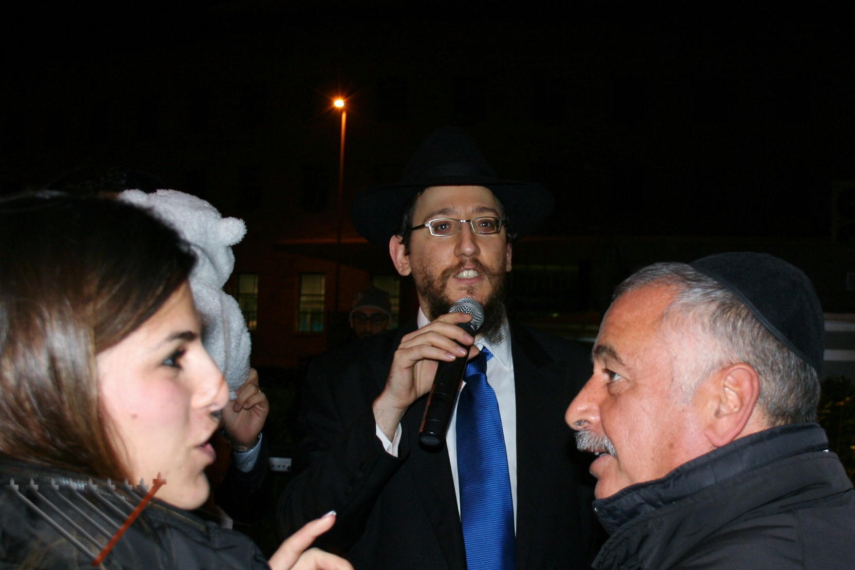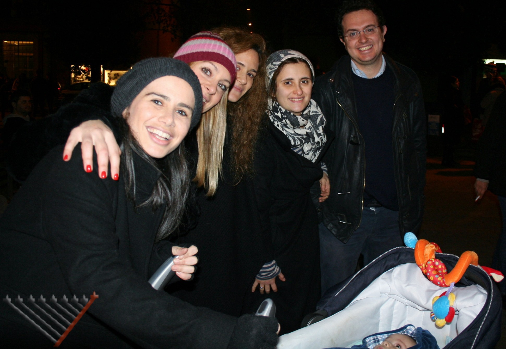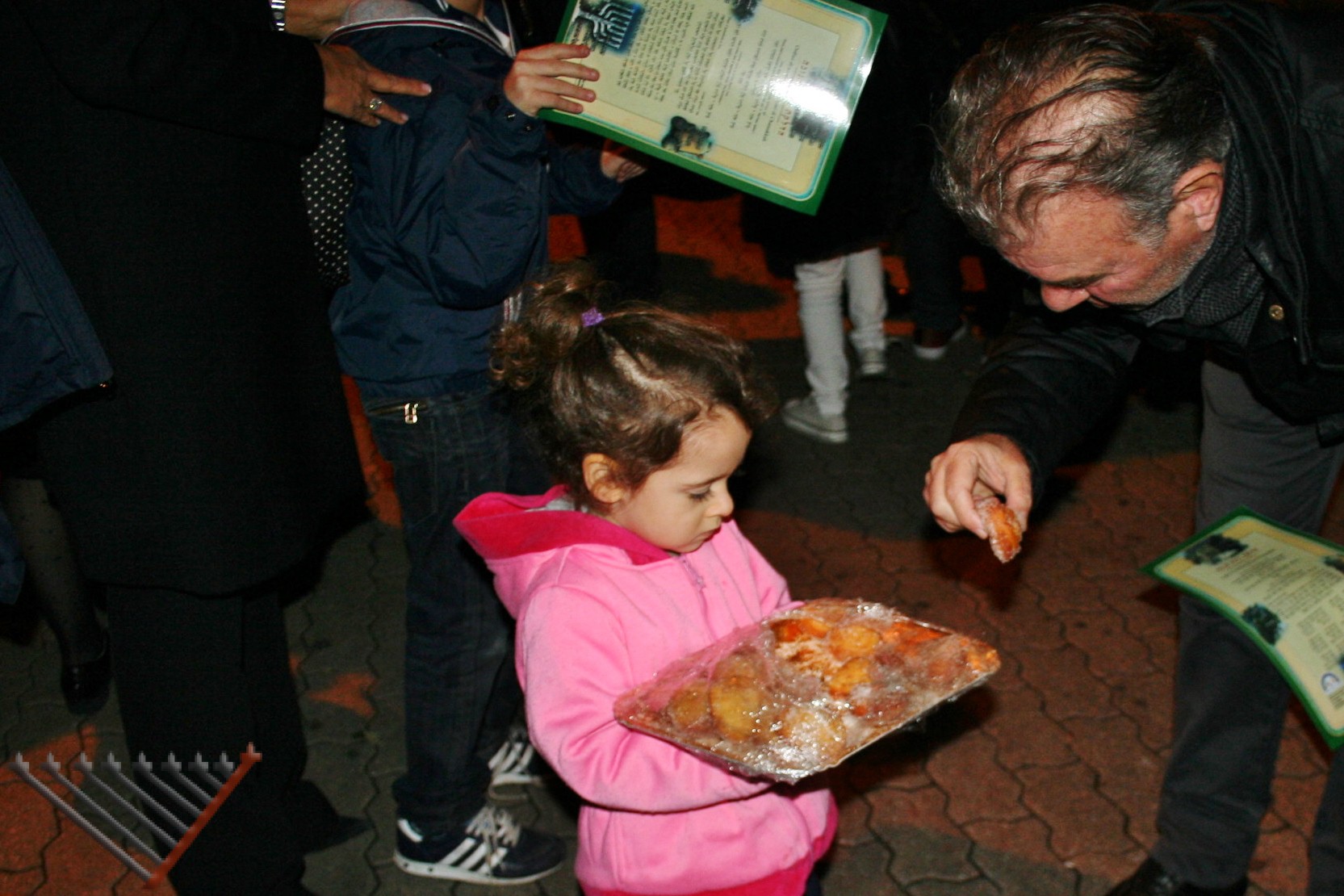 Although the Chanukah menorah is lit each night by a different local family, saturday night party included a magic show by magician Benjamin Fargion, music by Josy Anticoli, lighting of the Chanukah menorah by five different people and refreshments, donuts by Little Tripoli, sushi offered by Daruma Sushi and cookies offered by Mondo di Laura.