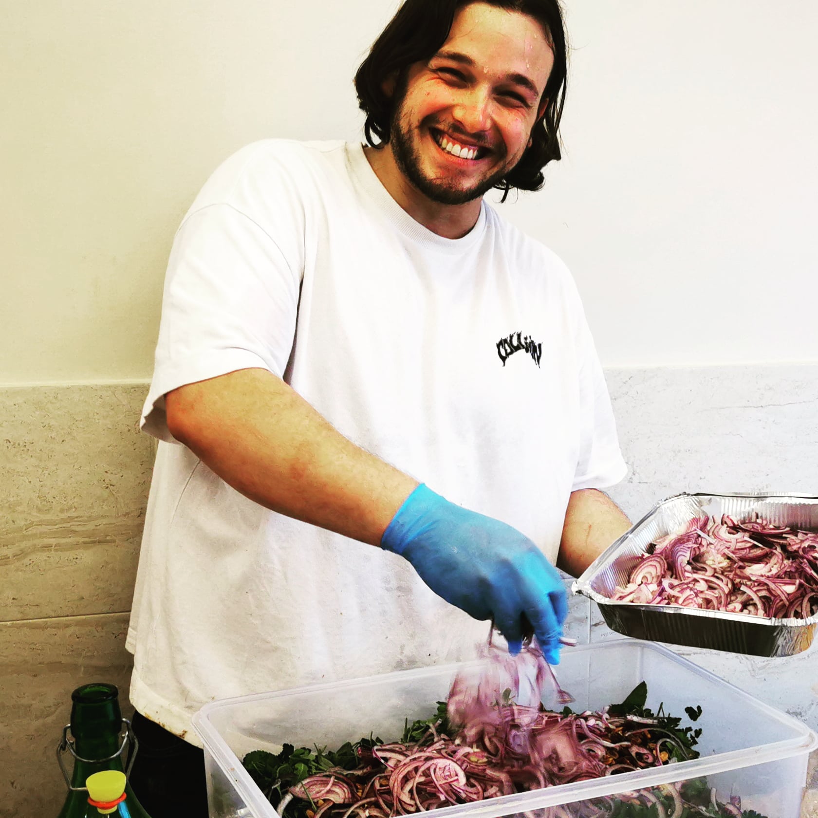 השנה, אחרי שנתיים של קורונה, איבדנו קשר עם הצוות שעבד בשנים הקודמות, חלק כבר עברו למקומות אחרים, חלק התחילו עבודות אחרות, אז החלטנו לחפש טבח ושהוא יבשל לסעודת פורים ככה שהוא יכיר את המטבח ואנחנו נכיר אותו.