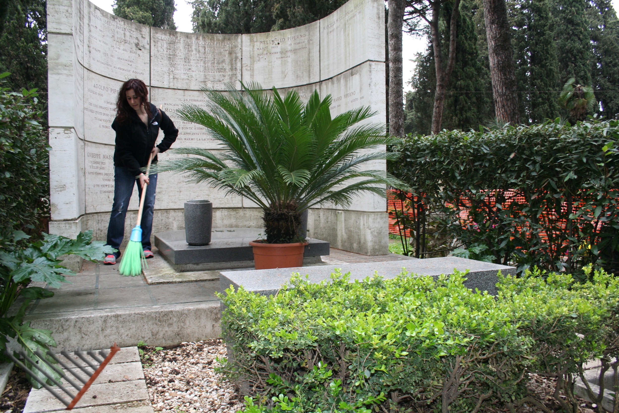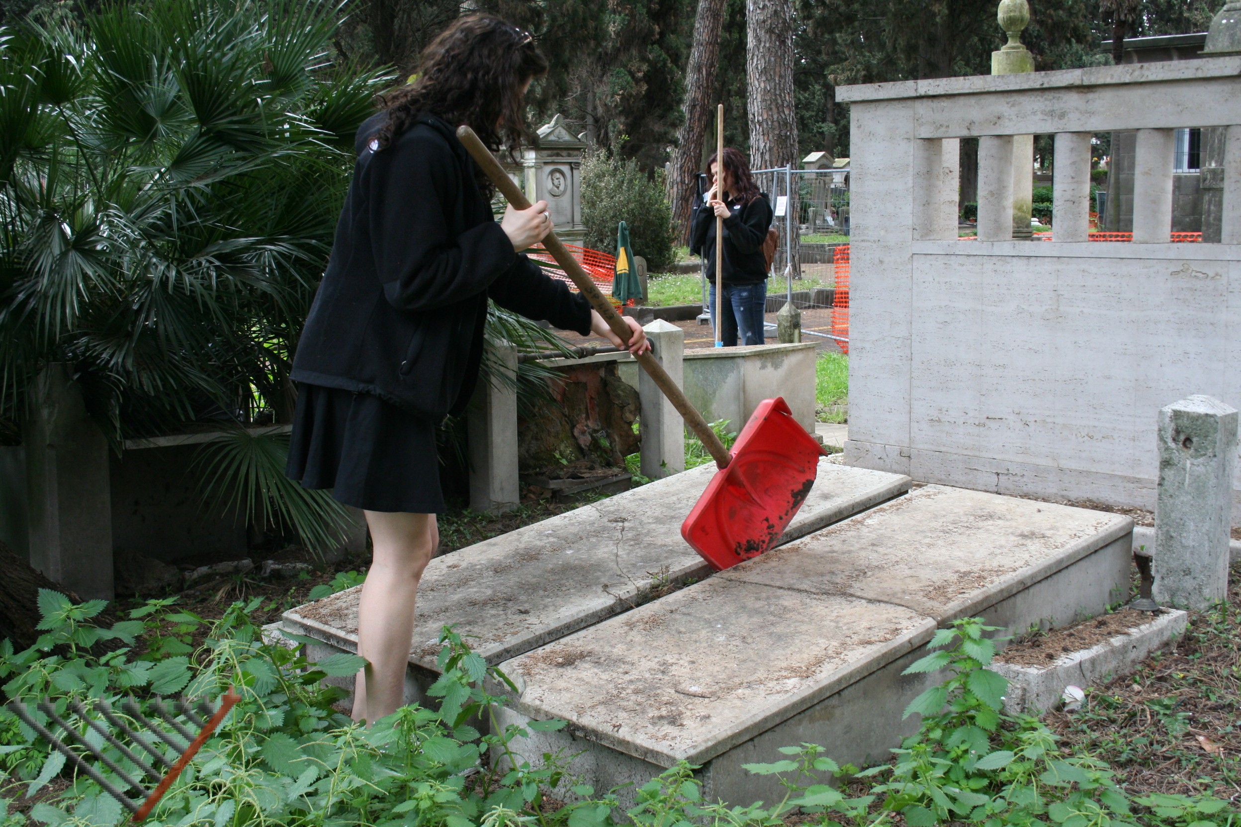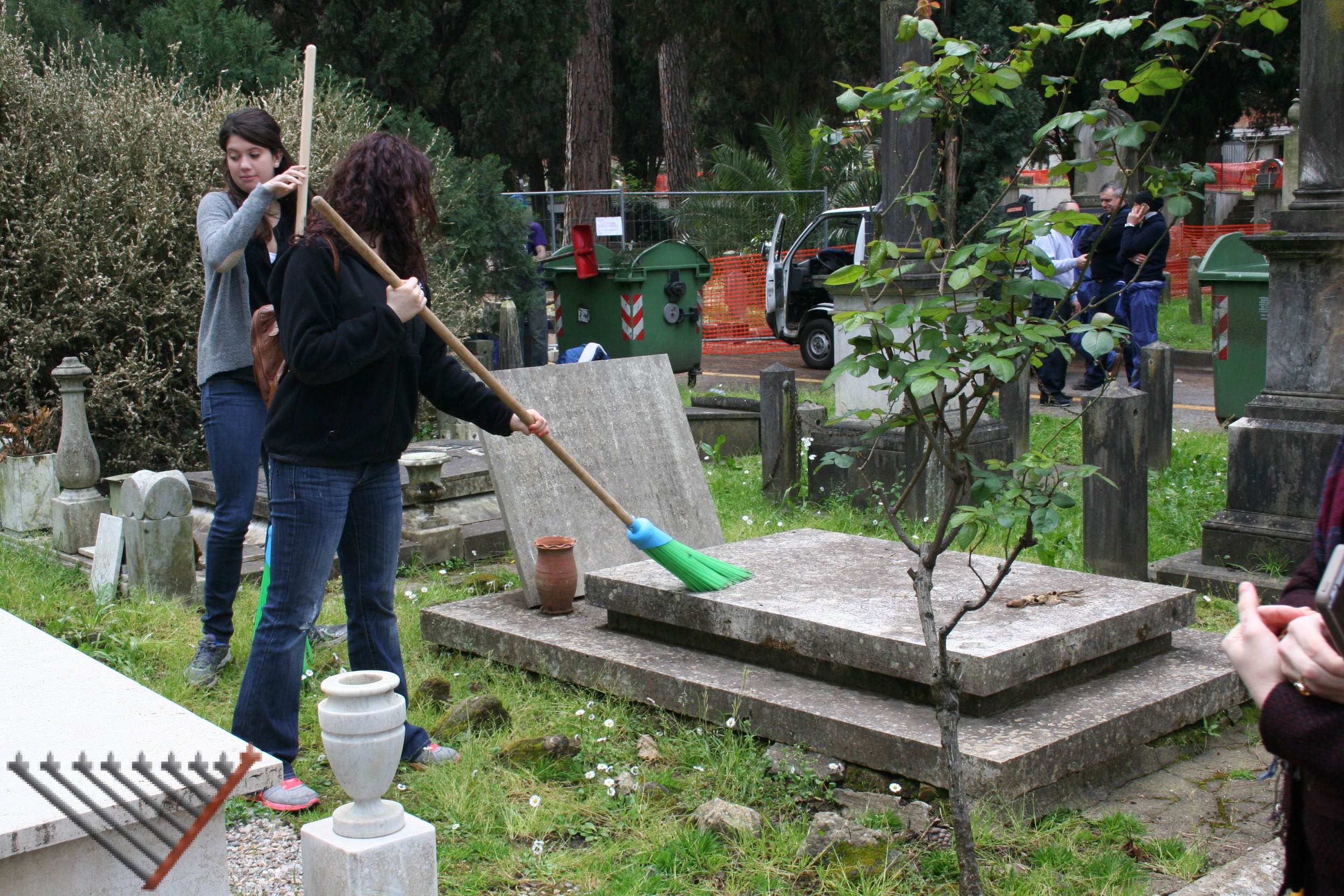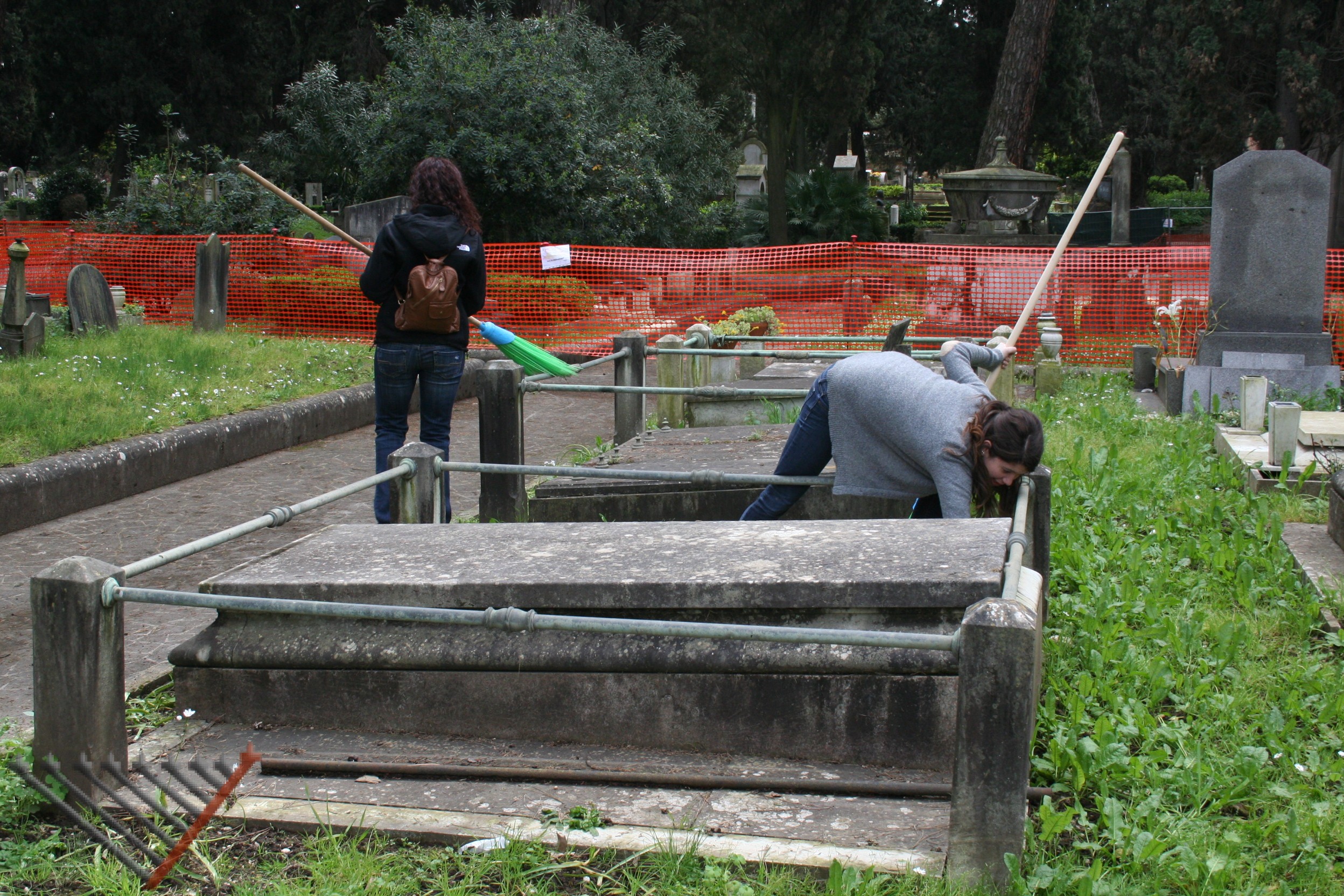 תודות לאישורים שניתנו על ידי הקהילה היהודית, ושיתוף הפעולה מהחברות האיחראיות לניקיון בית העלמין. AMA ו- Multiservizi המתואמות על יד הגב' כרמלה מאלא ממחלקת הביטחון ובעזרתו של מר. ויטוריו פאבנצ'לו, יהודי רומאי, הסטודנטים ניקו חלק מבית העלמין.