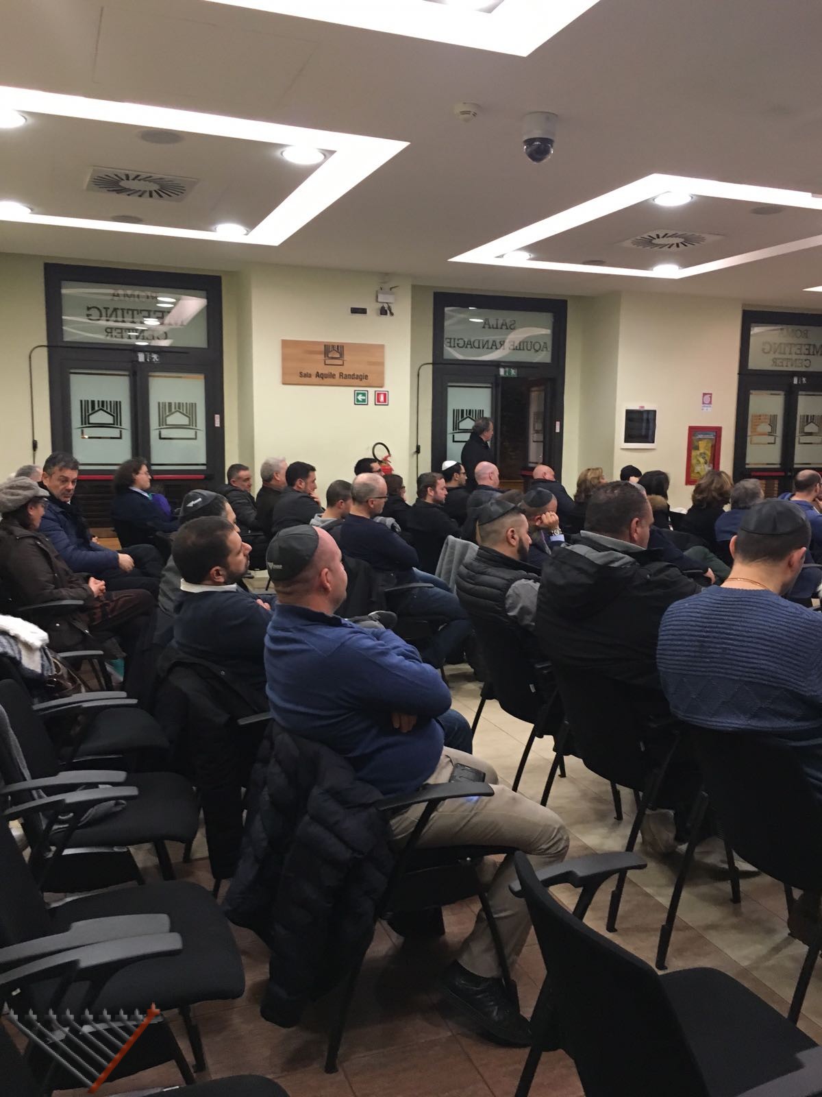 רמי שרמן, קצין המבצעים המכהן בזמן המשימה, נאם מעל לשעתיים בעזרתו של הרב לאזאר שתירגם את הדברים לאיטלקית.