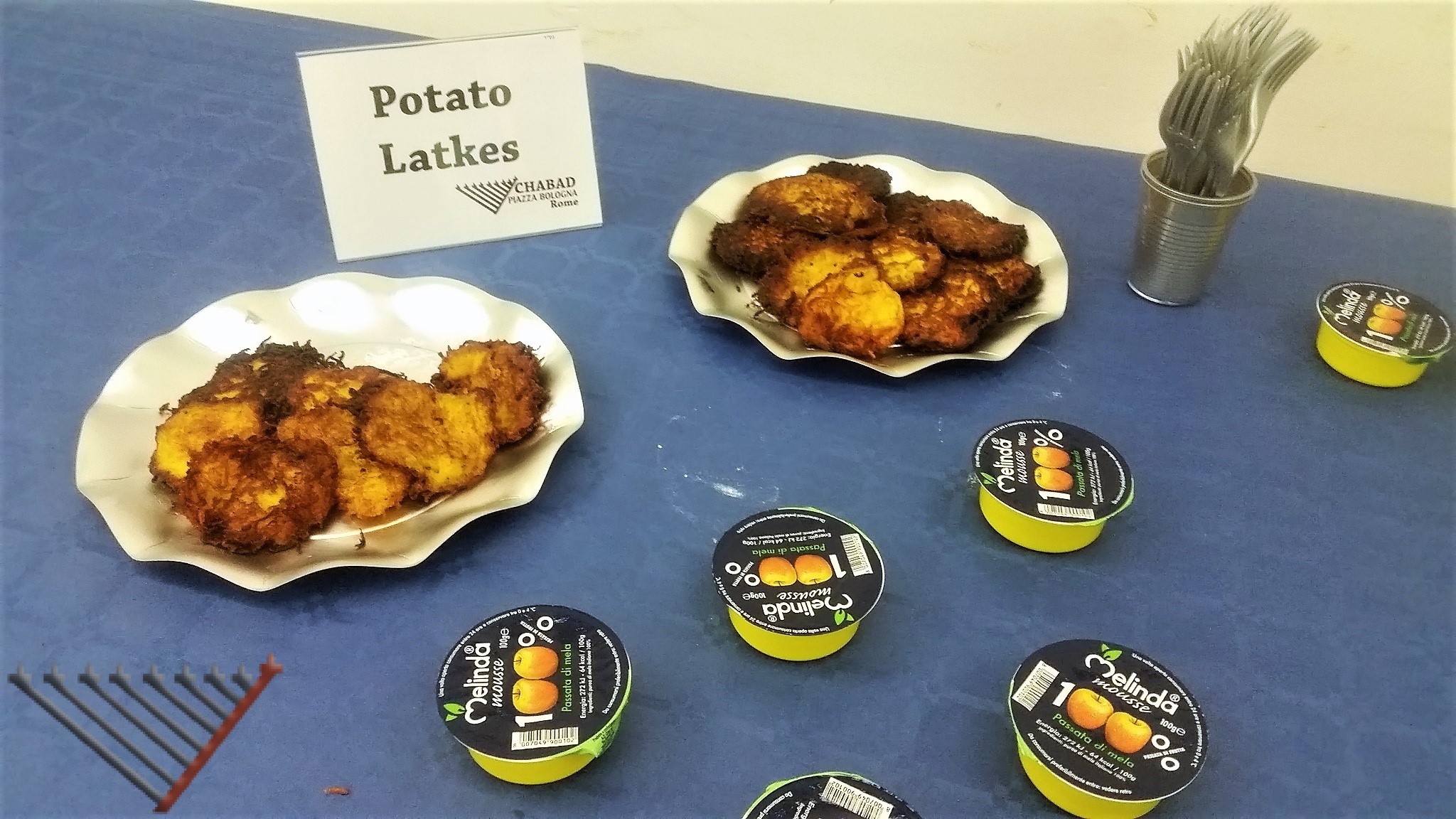 הוגשו סופגניות טריות עם מגוון של מילויים וציפויים, כמו גם לביבות תפוחי אדמה בתוספת רוטב תפוחים או רוטב פסטו.