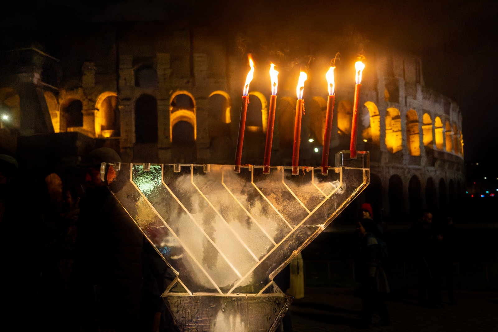 זו השנה השנייה, שהחנויכה האיר את הקולוסיאום, השנה ביתר שאת, ליד שער קונסטנטינוס, לא הרחק משער טיטוס.