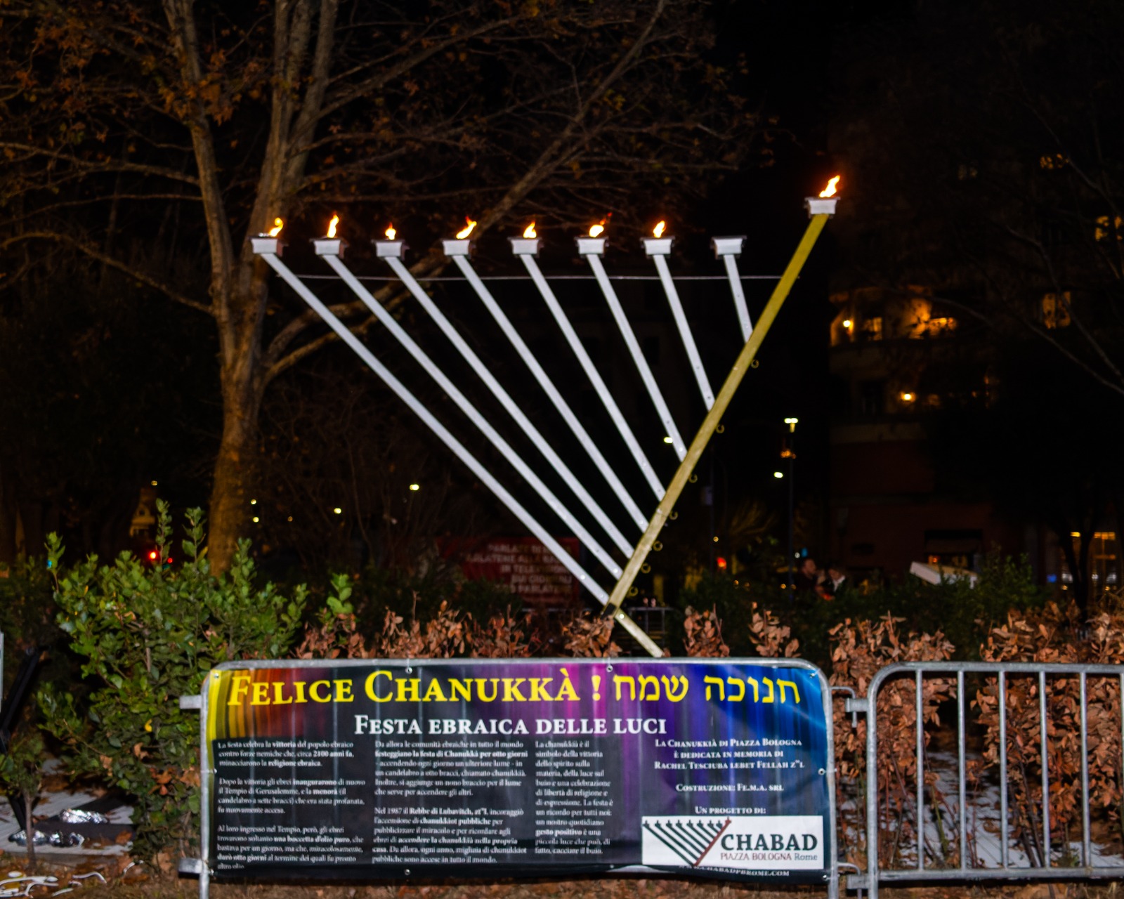 ההדלקה בפיאצה בולוניה הפכה למסורת בה משתתפים רבים מדי יום ובעיקר בערב המרכזי בו משתתפים כמה מאות.