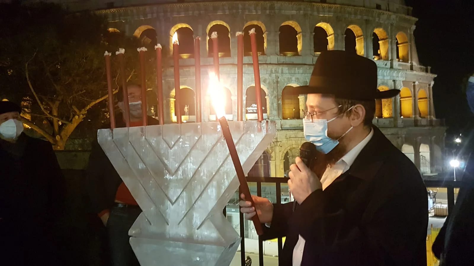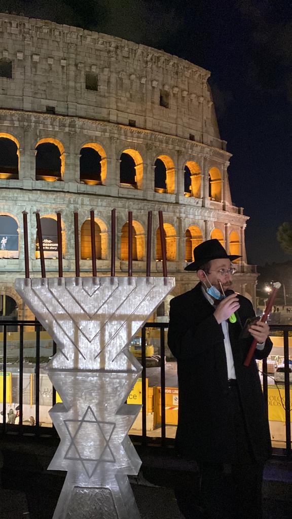 Un evento storico si è celebrato davanti al Colosseo, una Chanukià di ghiaccio è stata accesa con grande gioia.