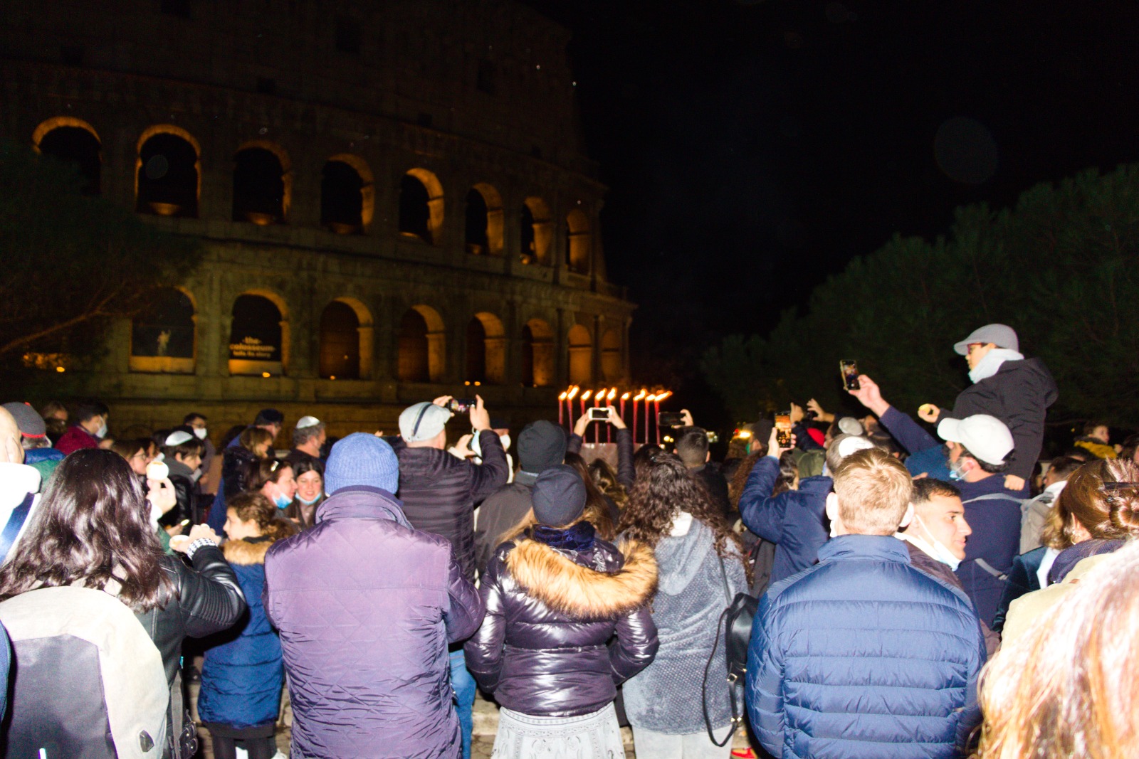 Prima dell’accensione, Rav Lazar ha spiegato che il Colosseo è stato costruito grazie al bottino del Santuario di Gerusalemme ed oggi, i Romani che hanno distrutto il Santuario non esistono ma l’ebraismo continua a vivere.