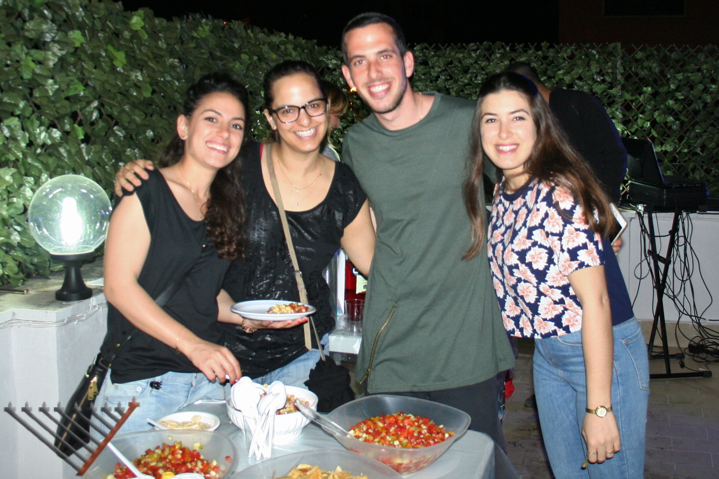 La festa si è svolta a Roma su una terrazza messa a disposizione per l’evento da Avi e Maicol Fadlun. Gli ospiti sono stati intrattenuti dalla musica di Maurizio Di Veroli, da un bar gestito da Karin Atzmon, e hanno potuto gustare carne e tanto altro ancora.