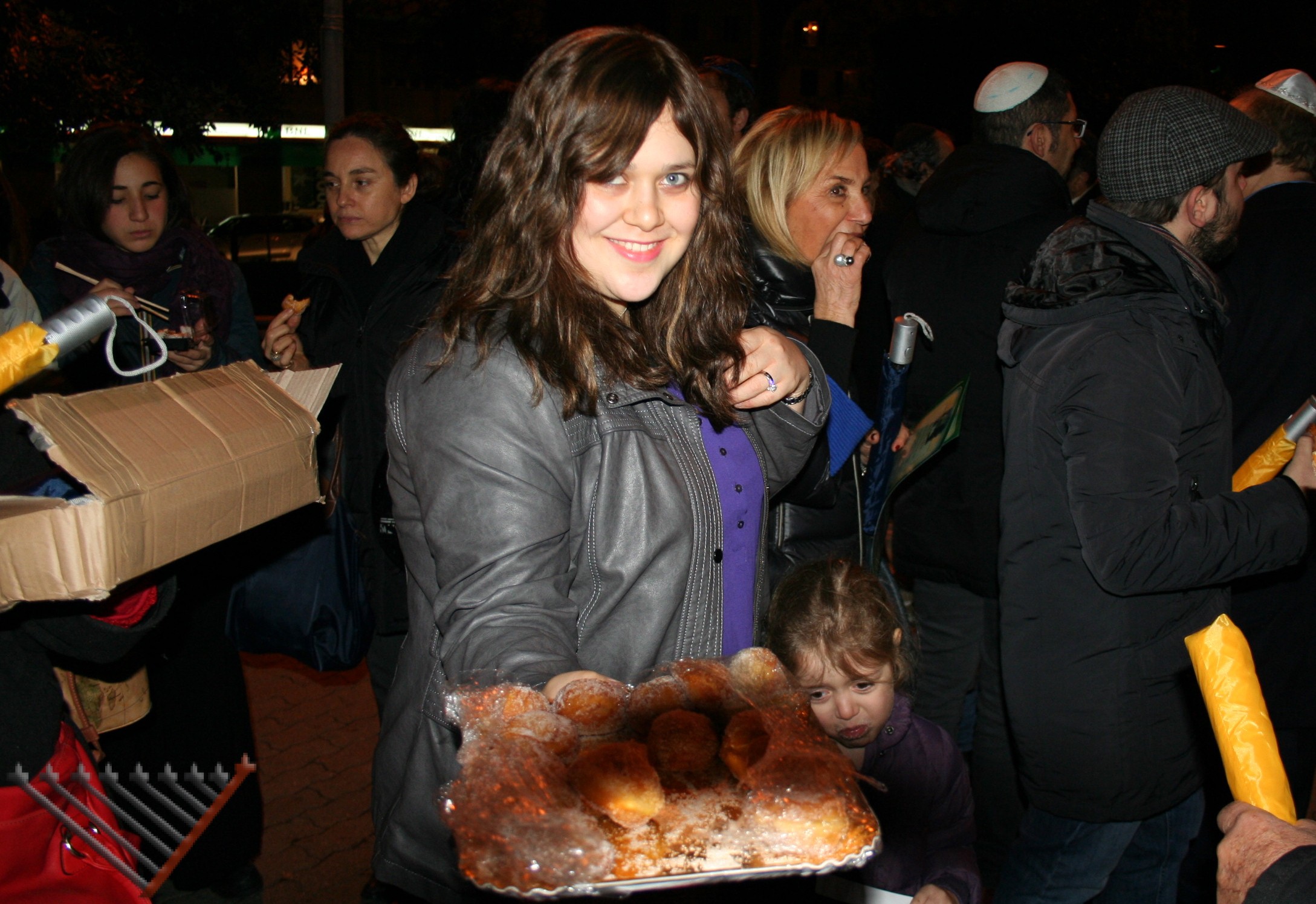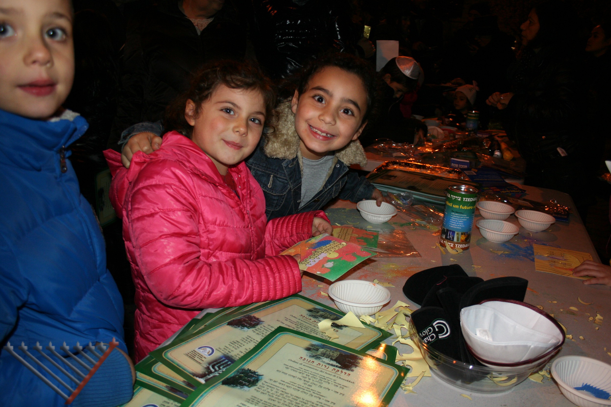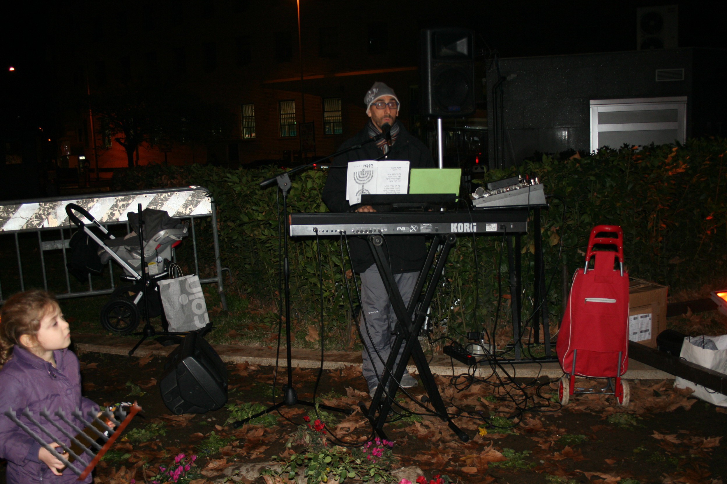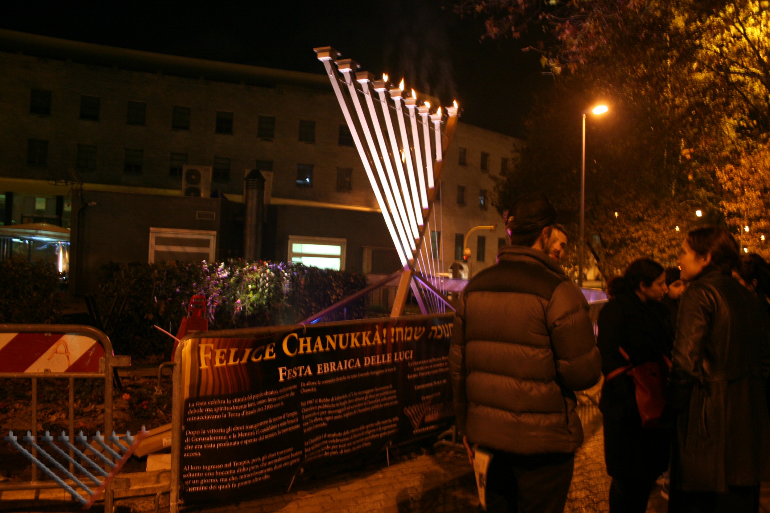 Mentre ogni sera la chanukkyà è stata accesa da una delle famiglie della zona, la festa del sabato sera ha visto uno spettacolo di magia del mago Benjamin Fargion, musica con Josy Anticoli, l’accensione dei lumi da parte di cinque persone diverse e un rinfresco: i bomboloni offerti da Little Tripoli, il sushi da Daruma Sushi e i dolci dal “Mondo di Laura”.