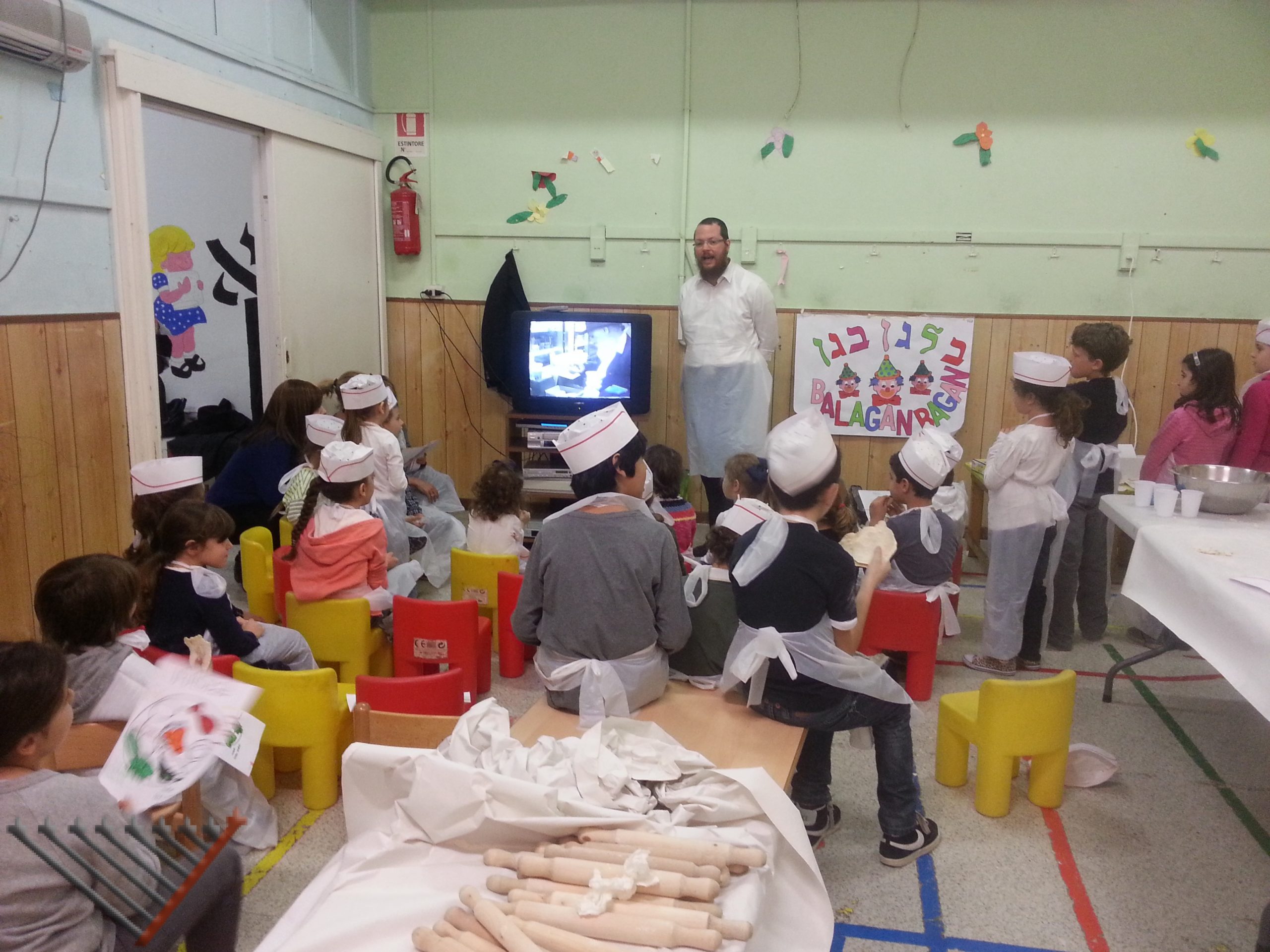 I bambini hanno potuto assistere al processo di preparazione dell’impasto, poi essi stessi hanno preparato la loro matzà. Mentre la matzà cuoceva nel forno, i bambini hanno guardato un video nel quale hanno visto come realmente viene preparata la matzà shmurà fatta a mano. Al termine della “lezione” ciascun bambino, oltre a ricevere la matzà preparata con le proprie mani, ha ricevuto anche un pezzo di autentica matzà fatta a mano per la sera del Seder di Pesach.