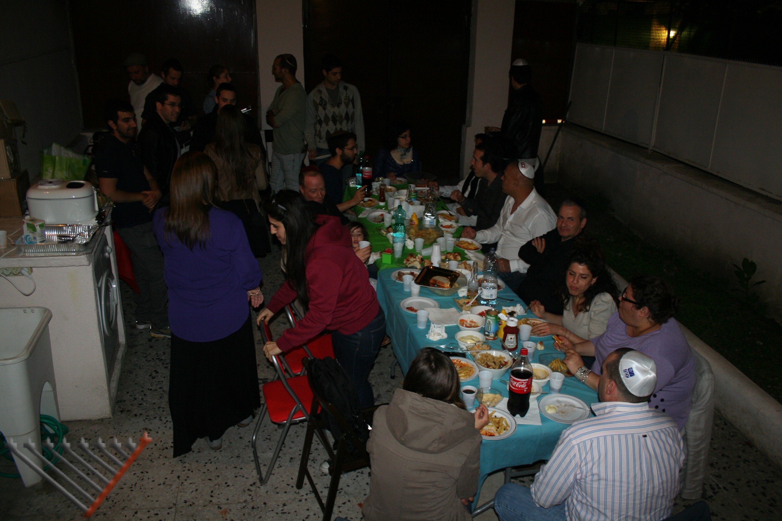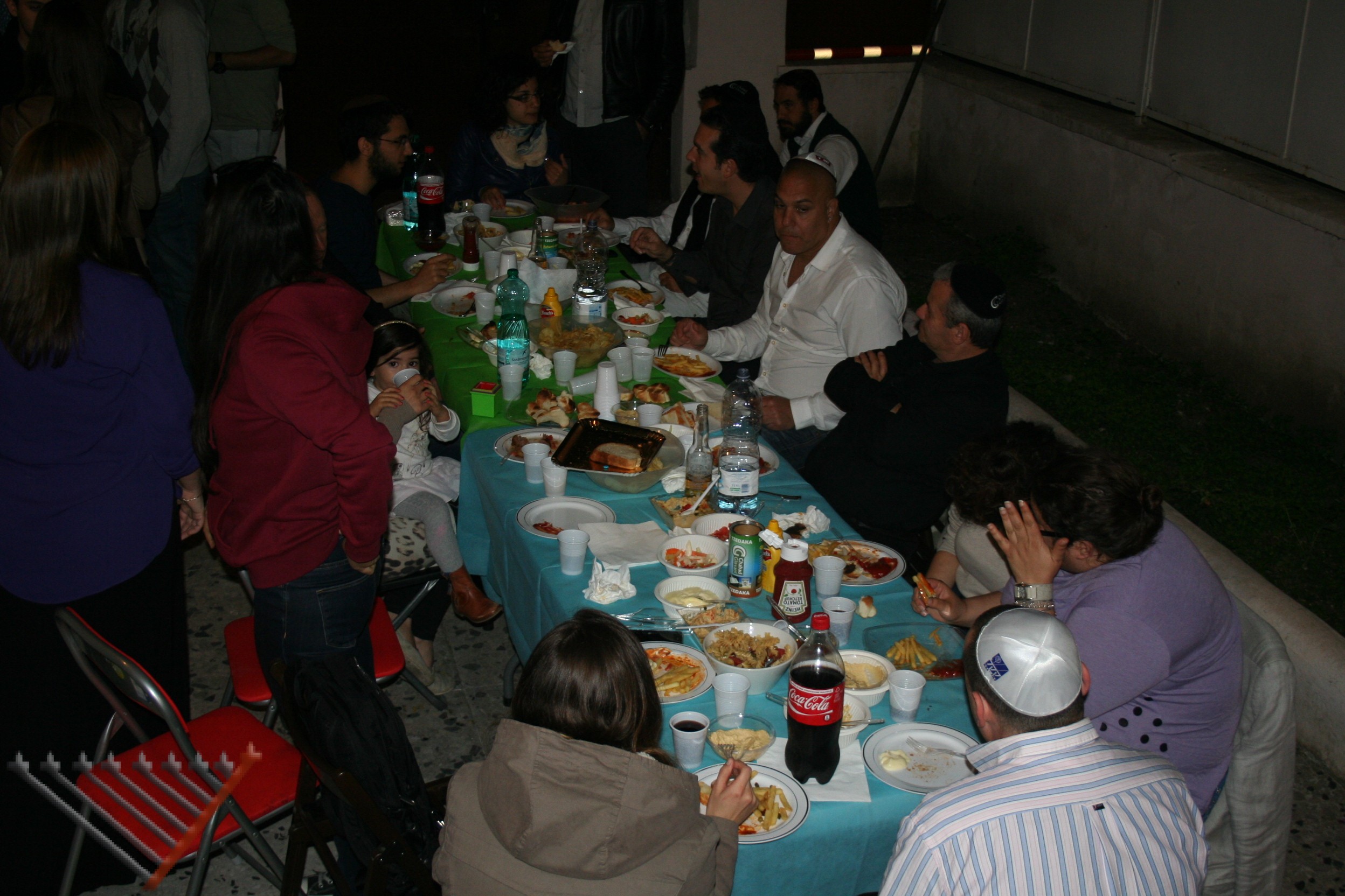 Studenti israeliani, ebrei romani e  turisti si sono riuniti insieme attorno a una tavola ricca di cibo, e hanno assistito a una lezione di rav Lazar. A concusione della serata è stato acceso un falò.