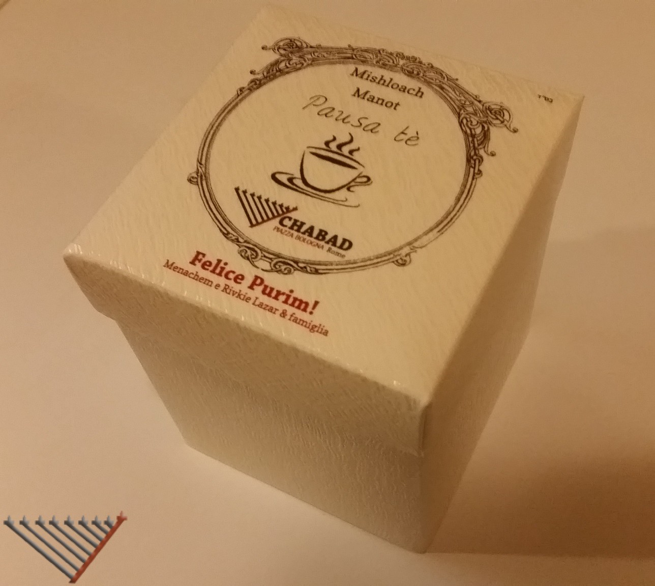 3:30 pm: Rabbi Lazar distributed Mishloach Manot, ideated and created by Mrs. Rivkie Lazar, in the area of Piazza Bologna.