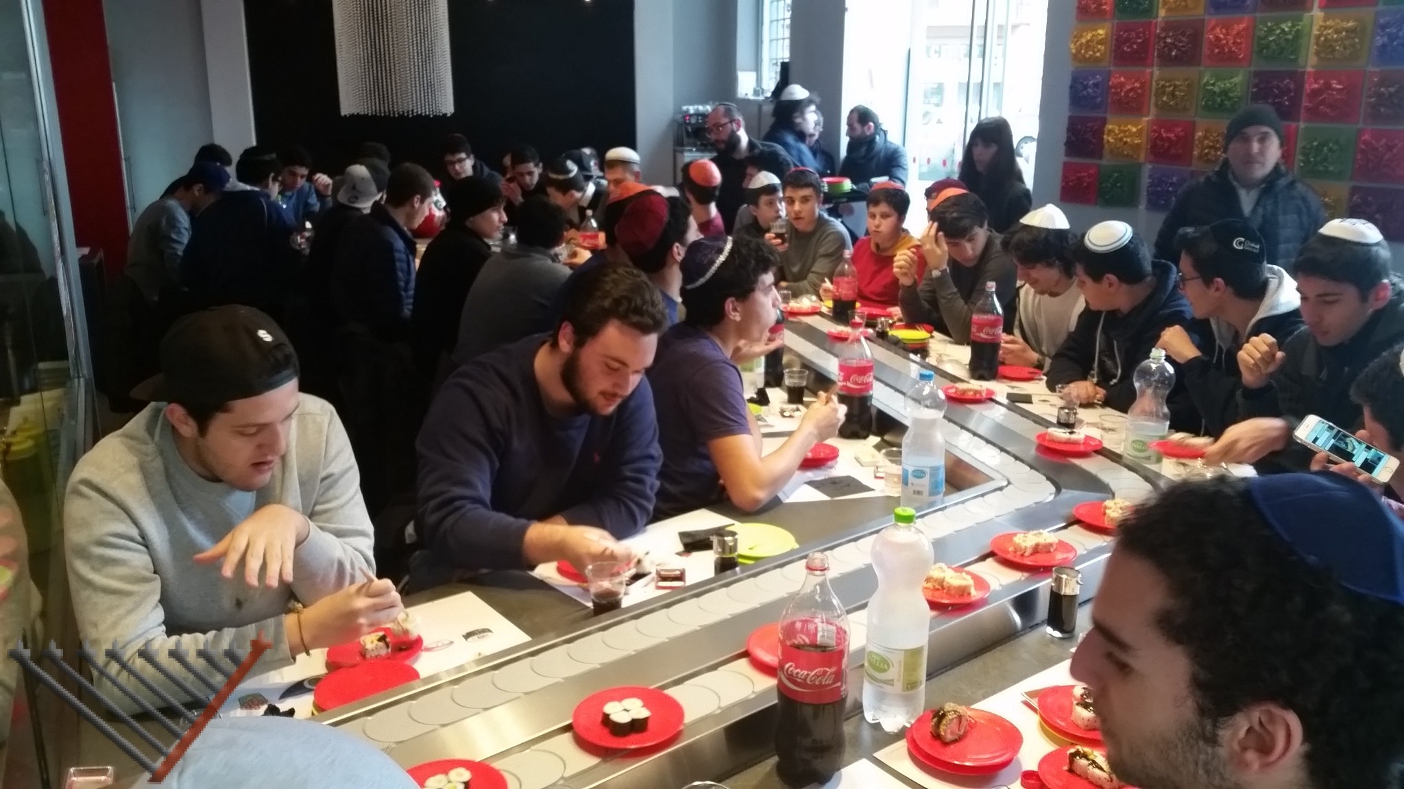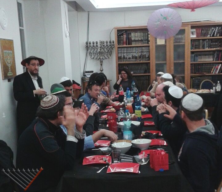 2:30 pm: Rabbi Lazar together with Elvis Raccah organized a Purim meal and read the Megillah at the Daruma Sushi Kosher for a group of teenagers. The group was created by Rabbi Leotardi, now living in Israel, who was the force behind the group.