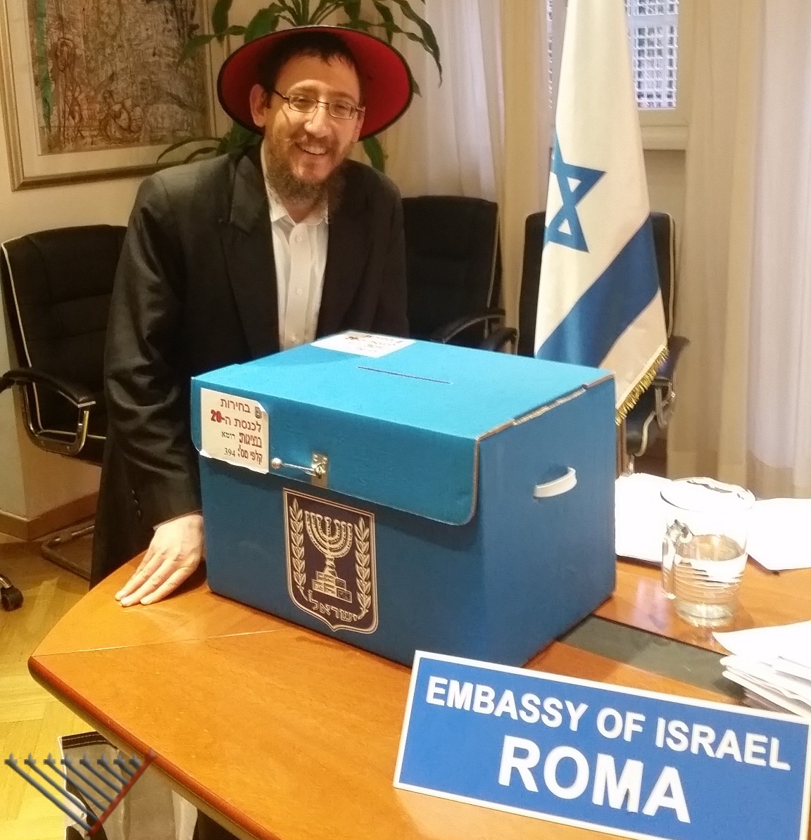 4:30 pm: Rabbi Lazar distributed Mishloach Manot at the Israeli Embassy.