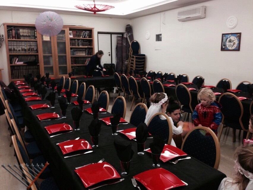 1:00 pm: Isroel Piha read the Megillah in the Baghetto restaurant for the Raccah family and other guests.