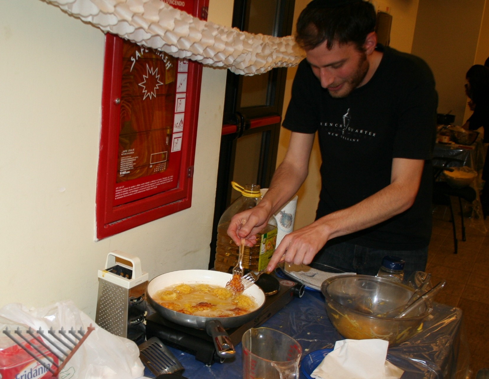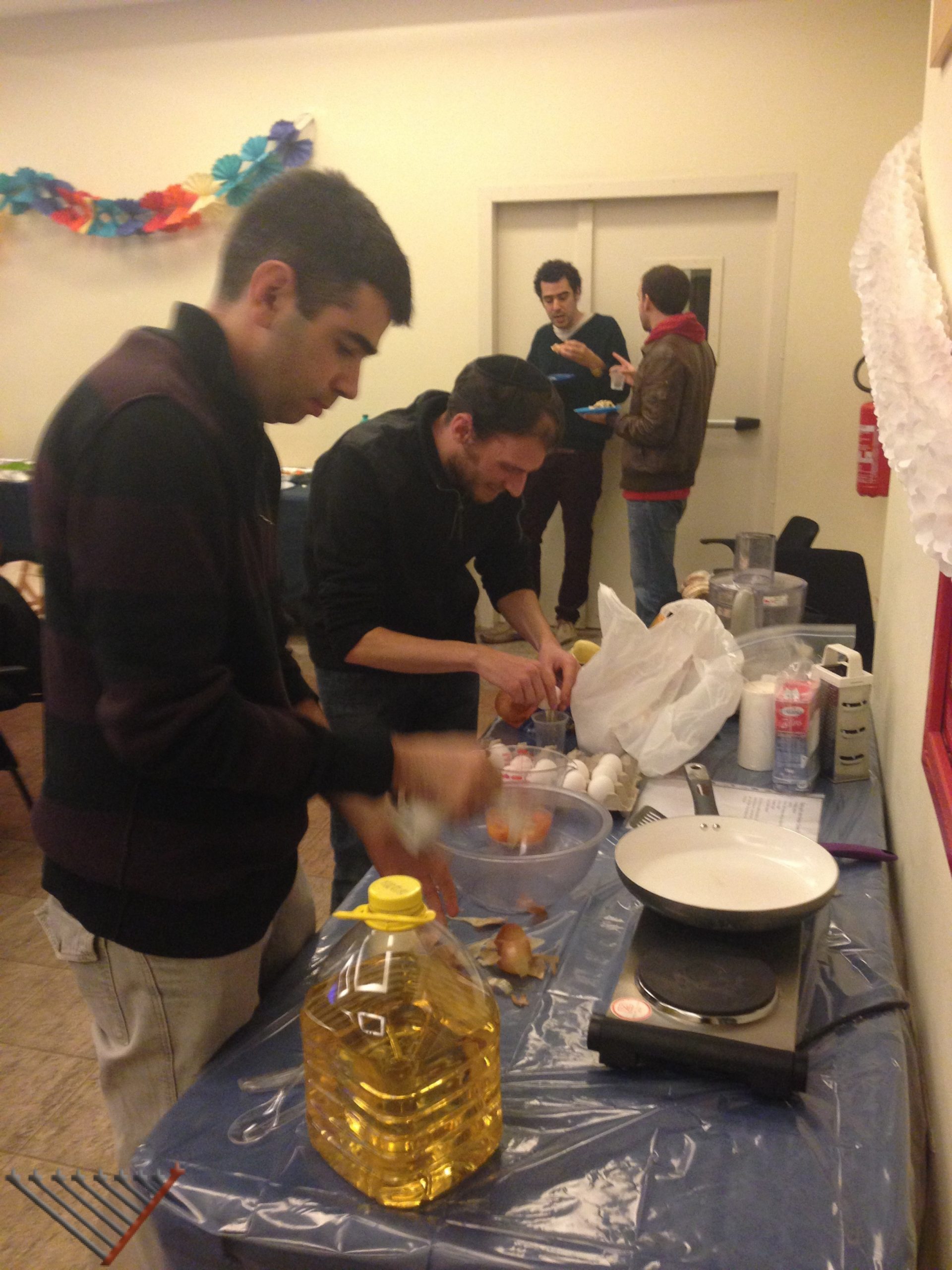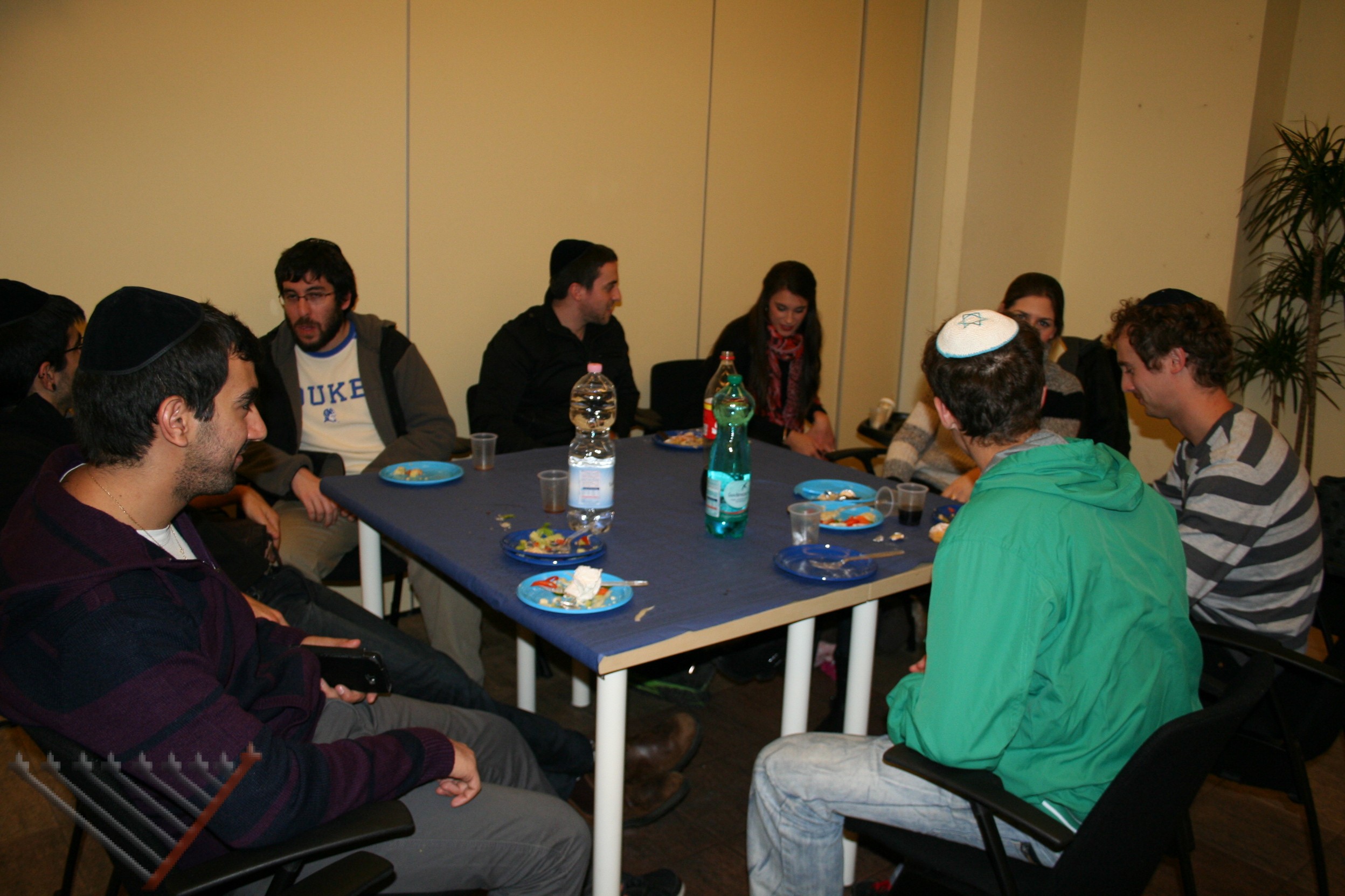 Tens of foreign students studying in Rome joined the Chanukah Party israeli style with Pita and Falafel served while the doughnut and the latkes were frying.