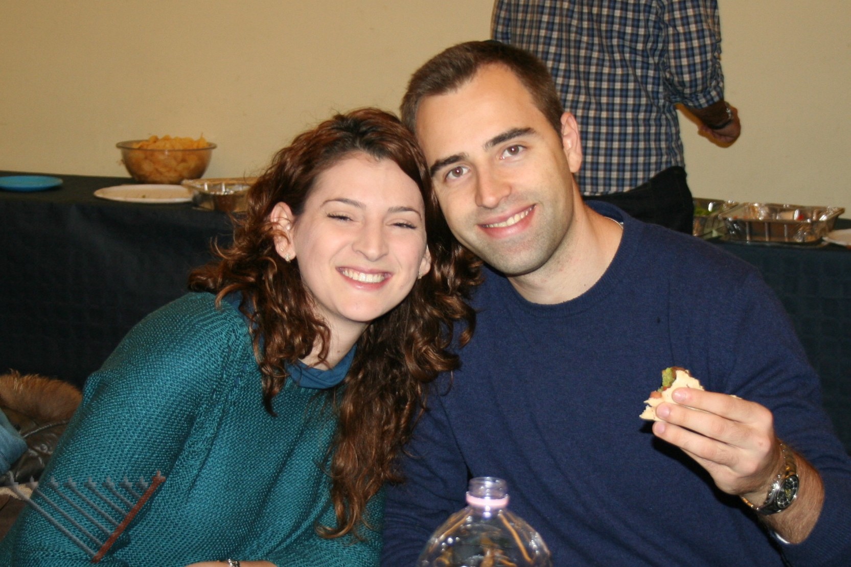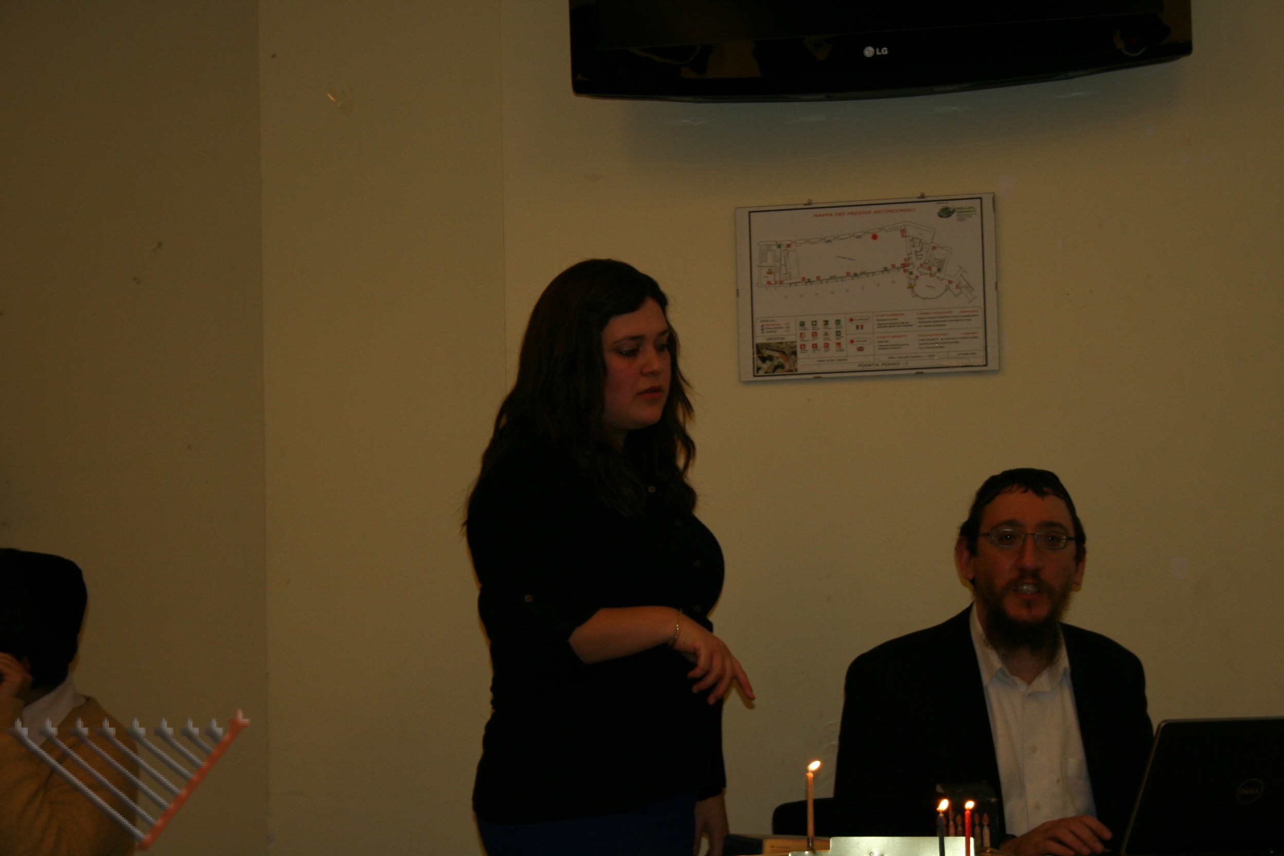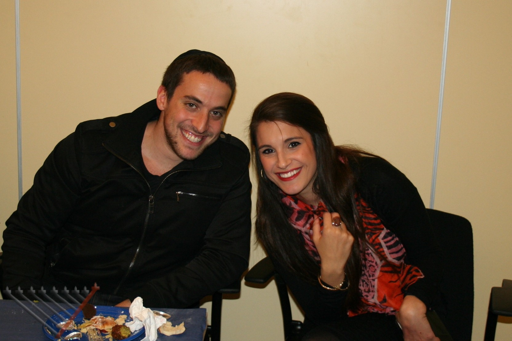 Tens of foreign students studying in Rome joined the Chanukah Party israeli style with Pita and Falafel served while the doughnut and the latkes were frying.